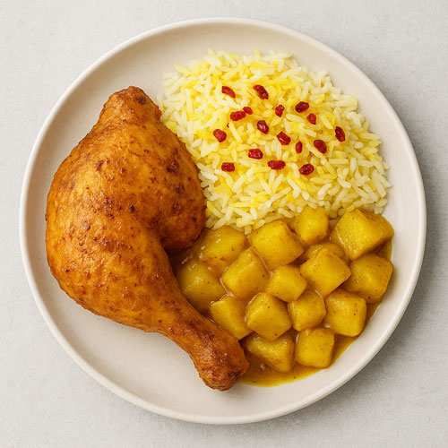 Kycklinglår med ris, berberis, kummin, Gäller från kl. 11:00 till kl. 15:00.