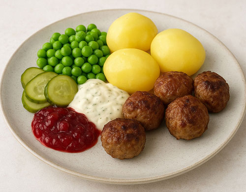 Köttbullar med potatis Gäller från kl. 11:00 till kl. 15:00.