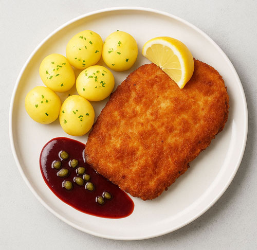 Schnitzel med potatis, citron, kapris och rödvinssås Gäller från kl. 11:00 till kl. 15:00...